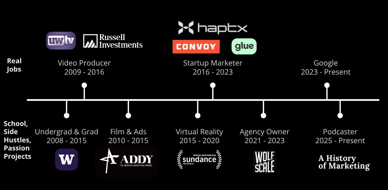 I also noticed that the marketers at Microsoft made a lot of money and didn’t have to haul around a bunch of film equipment all the time. I thought, Maybe I should become a marketer! I realized that while I loved filmmaking, Seattle is a pretty small filmmaking hub compared to New York or Los Angeles. I thought maybe marketing was the thing for me.