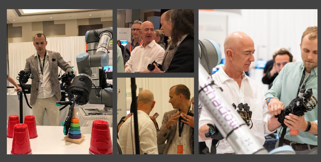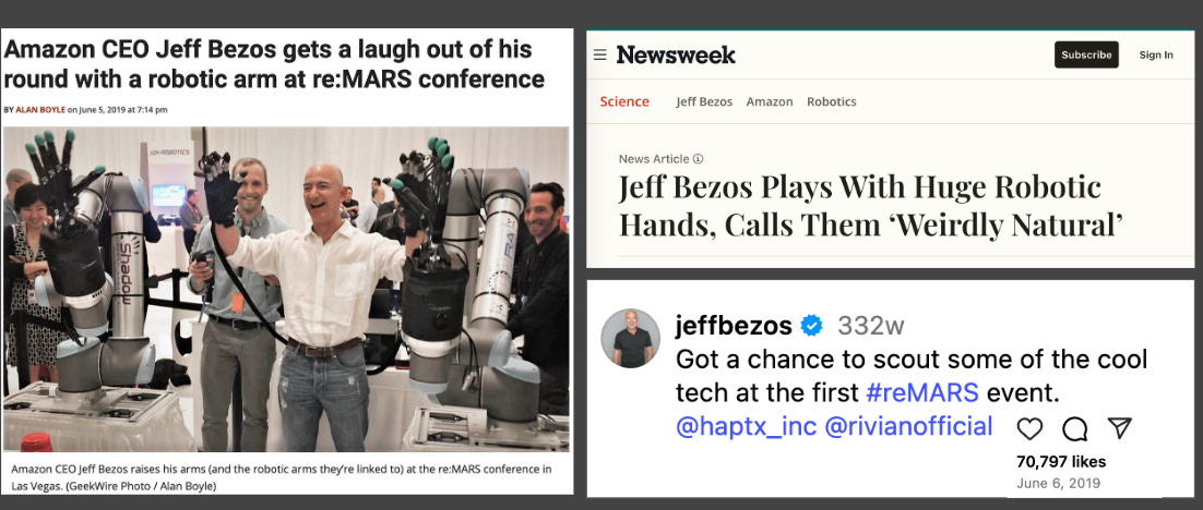 The company seemed like it was going out of business, but we had just committed to this re:MARS event that Amazon was doing. We had put all this work into this really cool robotic project. If you can use gloves in VR, you can use them to control robot hands. There are sensors on the robots so you can feel what the robot feels.
