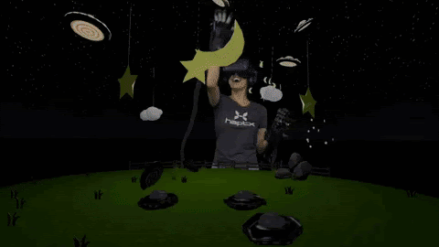 We had this demo where you got this virtual farm and a little fox jumps onto your hand, a little diorama, you can grab the moon from the sky, and at the end, aliens invade and you have to defend the farm. They try to abduct your little fox, your tractor and defend your farm. It’s called the “Farm Defense”. This demo we wind up using for years. This is kind of what it looked like.
